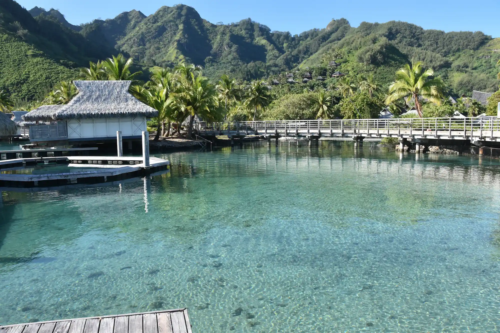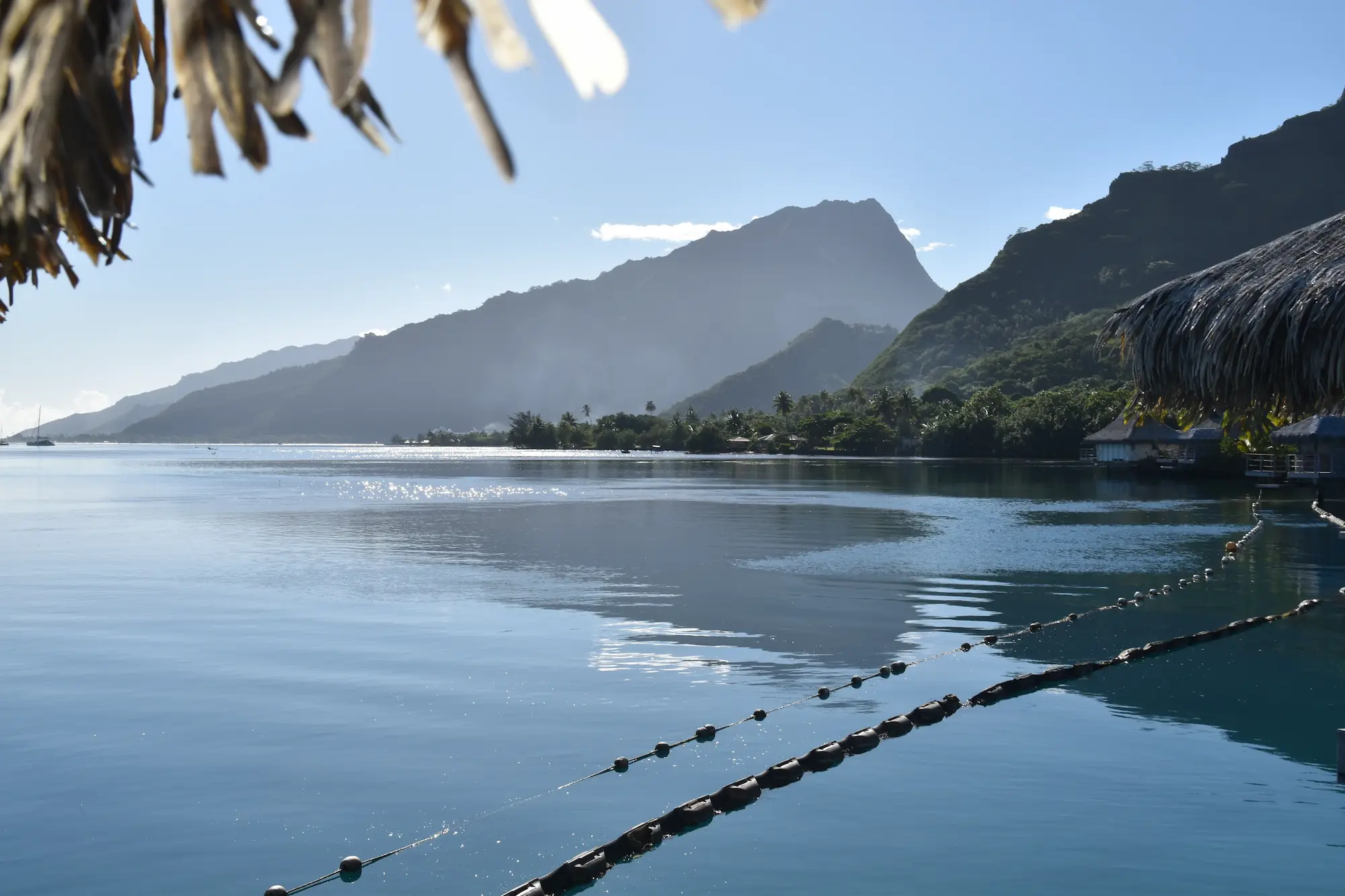Niché sur la côte ouest de Moorea, notre site offre un accès direct au lagon — l'un des plus préservés de Polynésie française. Dans cet écrin naturel d'une beauté exceptionnelle, entre eaux turquoise et montagnes volcaniques, Hina et Kuokoa évoluent librement depuis près de trente ans. C'est ici que tout commence. Nestled on the west coast of Moorea, our site offers direct access to the lagoon — one of the most pristine in French Polynesia. In this exceptional natural setting, between turquoise waters and volcanic mountains, Hina and Kuokoa have roamed freely for nearly thirty years. This is where it all begins.